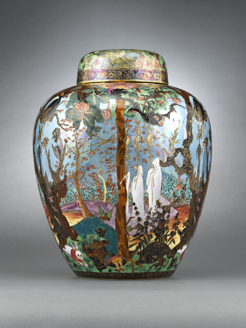 Wedgwood Fairyland Lustre Ghostly Wood Covered Malfrey Pot. Designed by Daisy Maekig-Jones. Circa 1920
