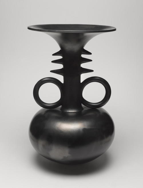 Magdalene Anyango N. Odundo (British, born Kenya 1950). Symmetrical Reduced Black Narrow-Necked Tall Piece, 1990. Terracotta, 16 x 10 x 10 in. (40.6 x 25.4 x 25.4 cm). Brooklyn Museum, Purchased with funds given by Dr. and Mrs. Sidney Clyman and Frank L. Babbott Fund, 1991.26. © Magdalene Anyango N. Odundo. (Photo: Brooklyn Museum)