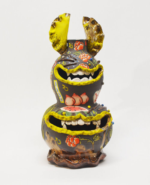 Haetae (yellow ears), 2022; Stoneware, underglaze, glaze; 15.5in x 6.5in x 7in. ©Jiha Moon