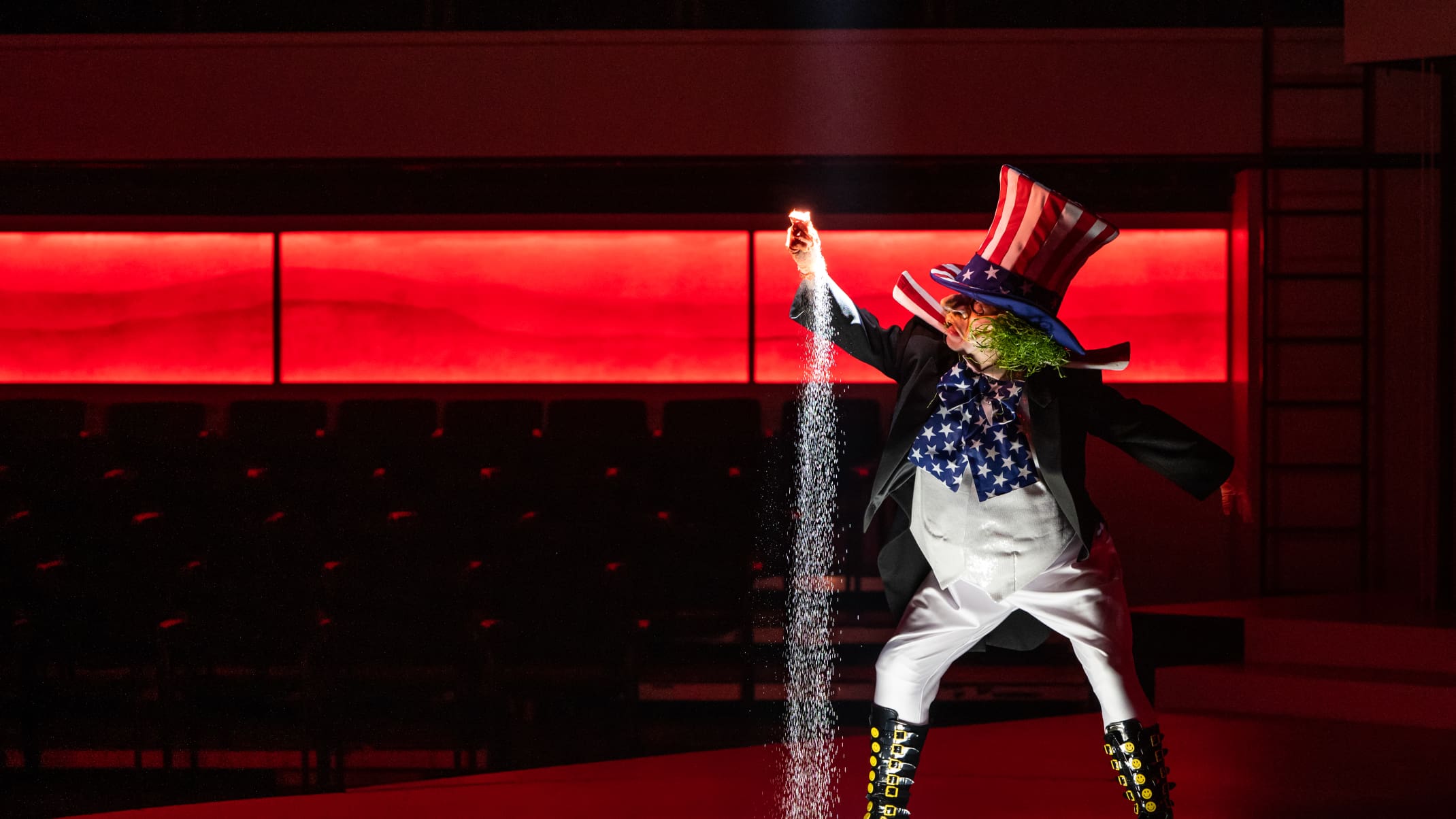 This show contains depictions of death (on stage) and suicide (off stage), cannon blast sounds, and will use strobe lights, loud drumming and theatrical haze.